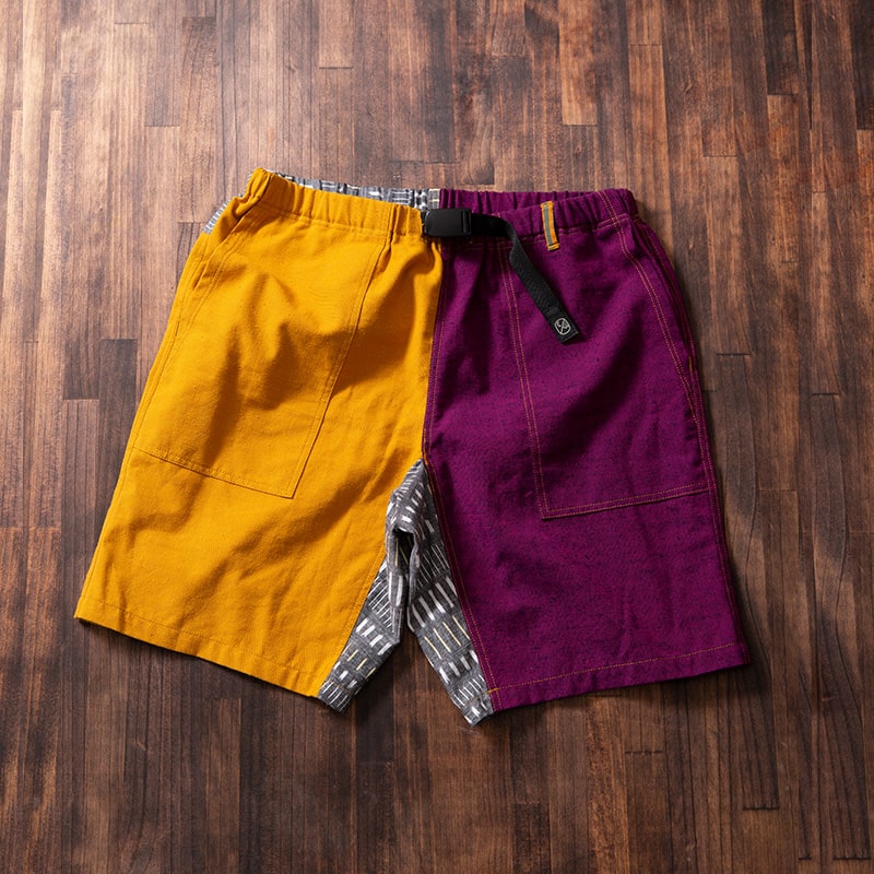 久留米絣のアウトドアショーツ PURPLE × MUSTARD